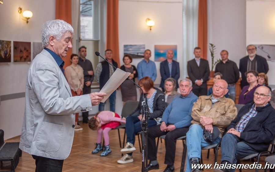 Dömötör Mihály megnyitó gondolatait nagy taps fogadta, majd Daróczi Csaba a klub egyik alapítója, sokszoros nemzetközi díjnyertes természetfotós figyelmességi ajándék kíséretében köszönte meg a biztató szavakat. Daróczi Csaba az ajándékozás közben elárulta, hogy Szegeden, amikor a fényképezéssel elmélyülten foglalkozni kezdett, a Dömötör Mihály vezette fotószakkörön bővítette ismereteit.