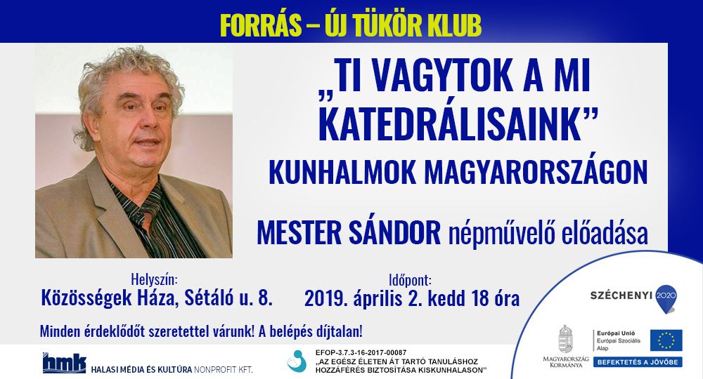 Ti vagytok a mi katedrálisaink! címmel tart előadást a magyarországi kunhalmokról Mester Sándor. A kiskunhalasi népművelő a Forrás-Új Tükör Klub vendége lesz kedden 18 órától.