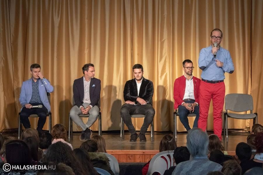 A Közösségek Háza nagytermébe Bobby McFerrin slágerével, a legismertebb acapella dallal vonultak be. Ez a Don’t Worry, Be Happy, amit vélhetően szinte mindenki ismer. Utána beszéltek az acapella éneklés komolyzenei részéről. Demonstrálták is néhány dallal, madrigállal, gregoriánnal, kánonnal. Kicsit a népdalokba is belenéztek. A folytatásban áttértek Amerikára és a blues zenére. Onnan építették fel a továbbiakat a rock and rolltól a mai zenéig.