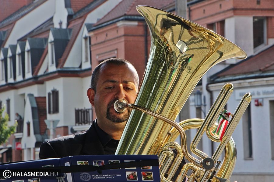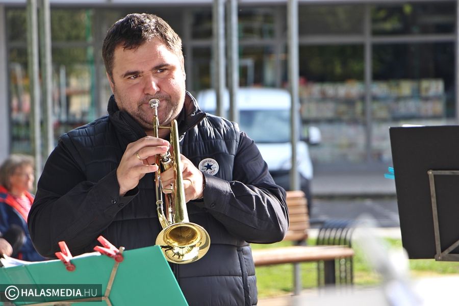 - Hosszú idő óta muzsikálunk együtt napi szinten, hiszen mi a Pannon Filharmonikusok tagjaiként napi szinten közösen dolgozunk. Sajnos a mögöttünk álló hónapok nem sok lehetőséget biztosítottak arra, hogy közönség elé lépjünk, éppen ezért fogadtuk nagyon nagy örömmel, amikor megtudtuk, hogy koncertkörútra indulhatunk a Filharmónia sorozattal. Azért szeretjük ezeket a fellépéseket, mert minden város, minden tér, minden szabadtéri közönség más és más. Éppen ezért a repertoárt is mindig úgy alakítjuk, hogy az megfeleljen az adott helyszínnek. Most, október 23-a lévén nem volt kérdéses, hogy a magyar Himnusszal zárjuk műsorunkat – árulta el Solymosi Péter trombitaművész.