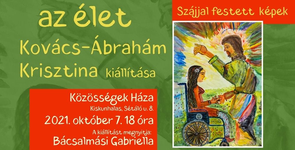 Az élet! Ez a címe a kiskunhalasi Kovács-Ábrahám Krisztina legújabb kiállításának. A szájjal festett képekből október 7-én nyílik tárlat a Sétáló utcai Közösségek Házában. A 18 órakor kezdődő megnyitón Bácsalmási Gabriella mond köszöntőt. A belépés természetesen ingyenes.