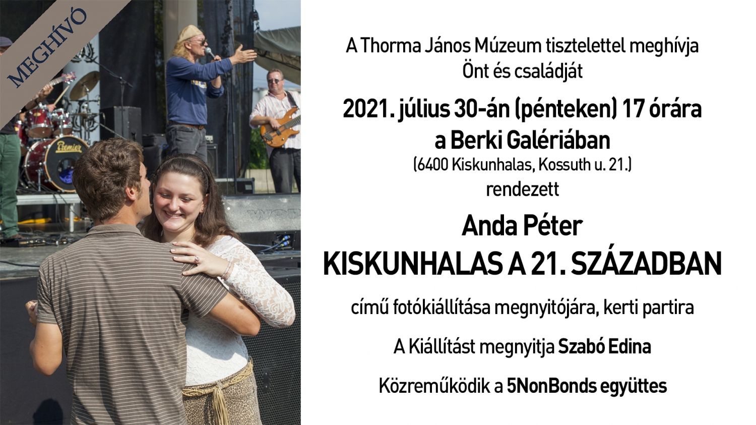 Kiskunhalas a XXI. században. Ez a címe Anda Péter fotográfus kiállításának, melynek ünnepélyes megnyitójára július 30-án, pénteken 17 órától kerül sor a Berki Galériában. A változatos témákat, eseményeket, személyeket bemutató fényképek mind városunkhoz kötődnek. A tárlatot Szabó Edina hobbifotós nyitja meg, a jó hangulatról pedig a 5NonBonds zenekar gondoskodik.