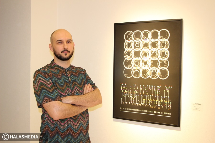 - A kiállítás kétéves periódusból nyújt válogatást, összesen három különálló projektet tartalmaz. Mindhárom projekt közös koncepciója a mozgás és az azt leíró vonal. Nagyon foglalkoztat, hogy hogyan és milyen eszközökkel lehet szemléltetni az idő múlását, valamint az, hogy a megtörtént eseményekből minden megfigyelő azonos következtetéseket von-e le. Ez alatt a nézőpontok és az értelmezések sokaságát értem. Legújabb, Ütközések című munkám egy olyan mozgó szobor, amelyben arra törekedtem, hogy egy adott intervallum összes történését a lehető legpontosabban elemezzem ki és vessem papírra. Maga a szobor 25 darab kis kart tartalmaz, amelyek tehetetlenül pörögnek ide-oda, közben pedig a szomszédjaikkal ütköznek. A karok végére ledeket erősítettem, majd a mozgásról egy 30 másodperces fotót készítettem. A fényképezővel együtt egy videófelvétel is indult, amelynek segítségével tudtam kielemezni és felírni az összes ütközést, ami a fél perc alatt lejátszódott. A szobor valójában csak egy eszköz, a grafikai anyag pedig maga a végtermék, ami egy szemléltető ábra. Az alkotófolyamat itt a klasszikus értelemben hiányzik, hacsak nem vesszük magát a megfigyelést egy teremtő aktusnak. A kvantumfizika például azt állítja, amit nem figyelünk meg, nem is létezik.