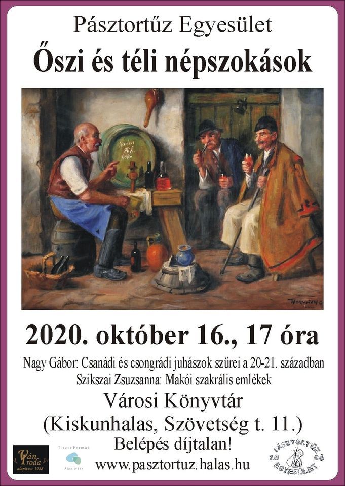 Őszi és téli hagyományaink. Néprajzi előadások várják az érdeklődőket a Pásztortűz Egyesület szervezésében. A Makói szakrális emlékekről, illetve a Csanádi és Csongrádi juhászok szűreiről árulnak el érdekességeket az előadók. A program 16-án, pénteken 17 órakor kezdődik a Városi Könyvtárban. A Mindszent Havi Aprók Tánca pedig 17-én, szombaton 15 órakor kezdődik, szintén a könyvtárban. Tánc, énektanulás és kézműves foglalkozás szerepel a programban.
