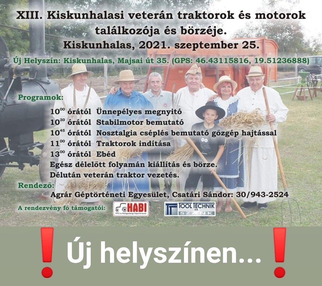 Beindítják a rég gépeket. Veterán traktorok és motorok találkozója lesz Halason 25-én, szombaton az Agrár Géptörténeti egyesület szervezésében. Fontos tudnivaló, hogy ezúttal új helyszínen a Majsai út 35 szám alatt várják a hagyományok és a gépek iránt érdeklődőket. 10 órakor kezdődnek a programok. A megnyitót követően lesz stabilmotor bemutató, A tervek szerint háromnegyed 11-kor kezdődik a nosztalgia cséplés bemutató gőzgép hajtással, de beüzemelik majd a traktorokat is.