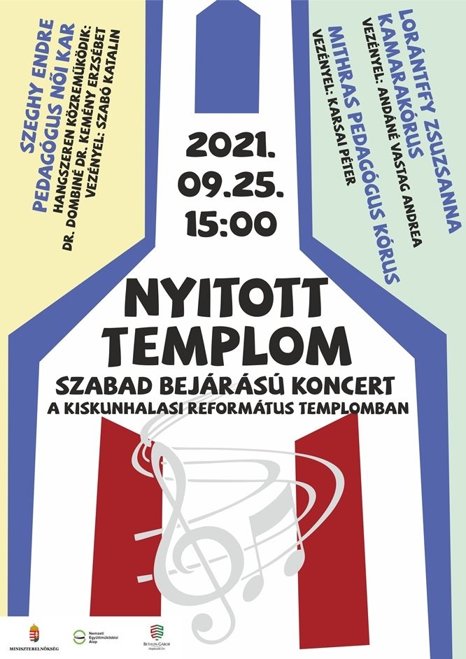 Nyitott templom. Szabad bejárású koncert lesz szombaton a halasi református templomban. Három kórus várja az érdeklődőket, a Lorántffy Zsuzsanna Kamarakórus, a Mithras Pedagógus Kórus és a Szeghy Endre pedagógus Női Kar. A program 25-én 15 órakor kezdődik.