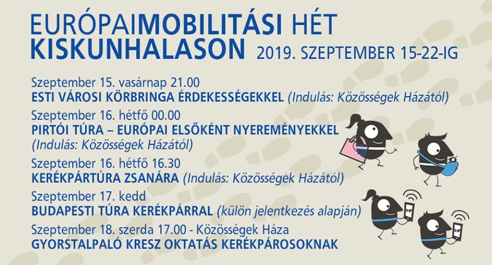 Vasárnap kezdődik és egy héten keresztül minden napra tartogat valamilyen eseményt Halason a Mobilitási hét, illetve hozzá kapcsolódóan a kulturális örökség napjai. A résztvevők többek között felkeresik Halas nevezetességeit, lesz például éjféli és Budapesti bringatúra, iskolásoknak vetélkedő,bringás reggeli de a főtéri autómentes nap is több eseményt kínál. Az első program 15-én, vasárnap este 9 órakor kezdődik. A Közösségek Házától indul az esti városi körbringa érdekességekkel. 16-ám 0 órakor pedig Pirtóra indul éjszakai túra, szintén a Közösségek Házától.