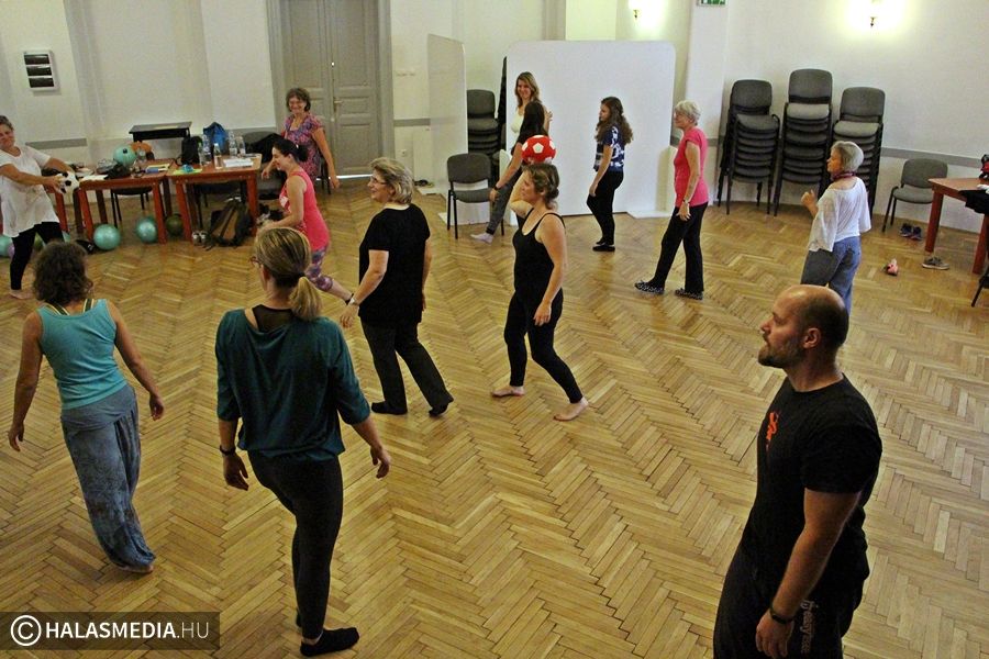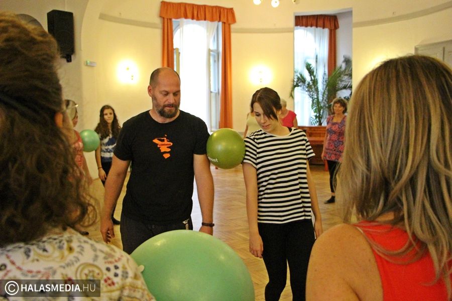 - Nagyon érdekes, hogy például egy egyszerű labdával is milyen sok mindent lehet csinálni. Párokban dolgozunk és ilyenkor csak egymásra vagyunk utalva. Nem elég, ha magunkra figyelünk, a társunk minden rezdülésére is reagálnunk kell. A mindennapokban nekem gondjaim vannak a másokkal való kapcsolatteremtéssel, de a mai kurzus után úgy érzem, sokat fejlődtem – árulta el kérdésünkre az egyik résztvevő.