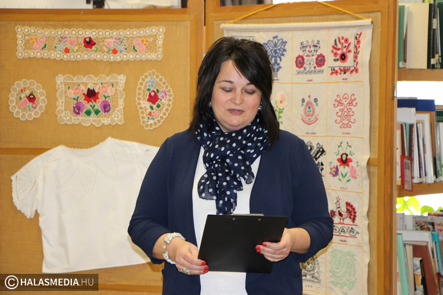 A városi könyvtár olvasóterme egy hétre kiállítótérré is alakult. Fejes Józsefné mutatja be nagy gondossággal és precizitással készített kézimunkáit. A tárlat címe: Riseliő. Ez a hímzés egy olyan technika, amelyet a varrott csipke utánzására alakítottak ki eredetileg Franciaországban.