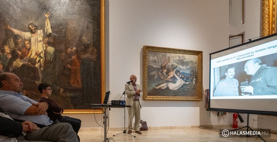 Romsics Ignác, a Magyar Tudományos Akadémia rendes tagja fő kutatási területe a 20. századi történelem. Mint Szakál Aurél szervezőtől (korábbi múzeumigazgató) megtudtuk – aki Romsics Ignác előadását felvezette – az előzetes érdeklődés miatt választotta a két kötet bemutatását a történész. A Halason már többször előadást tartó egyetemi tanár a „Hetven év - Egotörténelem 1951-2021” című kötettel kezdte, prezentációval kísért előadását.