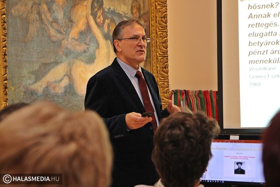 - Sokan a televíziós sorozatból és a mende-mondákból azt hiszik, hogy egy hős volt. Kutatásaim során azonban rá kellett jönnöm, hogy teljesen közönséges bűncselekmények sorát követte el ez az ember. Lovas társaival lerohanták a tanyákat, kirabolták az ott élőket. Ez szerintem minden csak nem romantika. Ezt hallván pedig sokan felkapják fejüket az előadásaimon – tette hozzá az előadó.