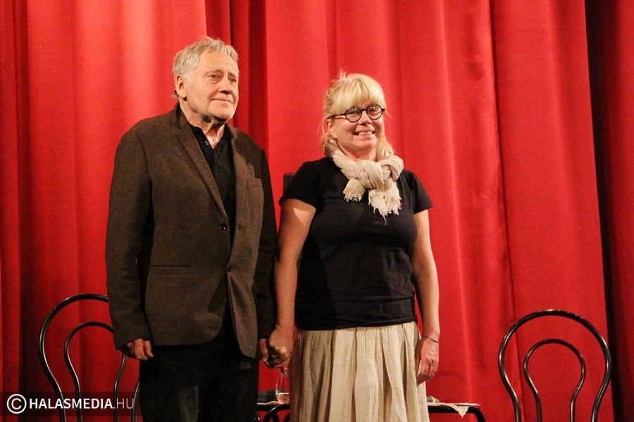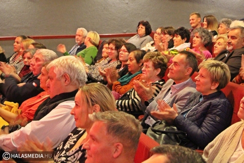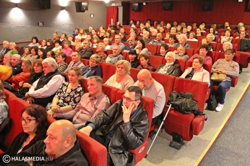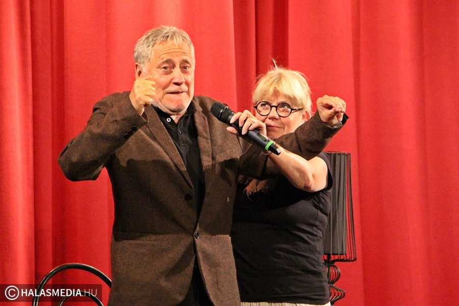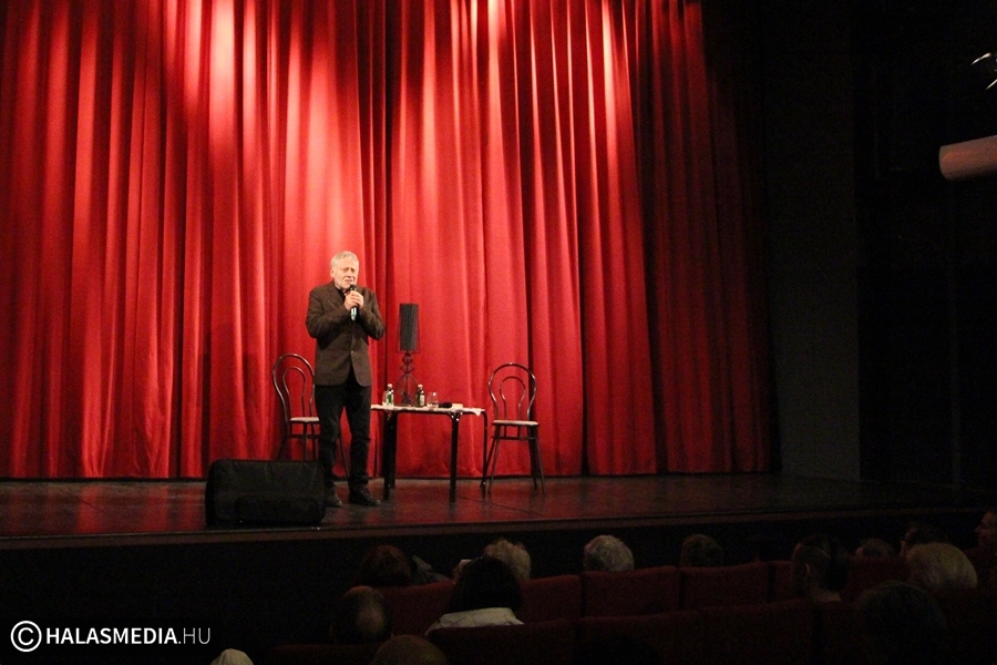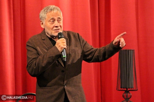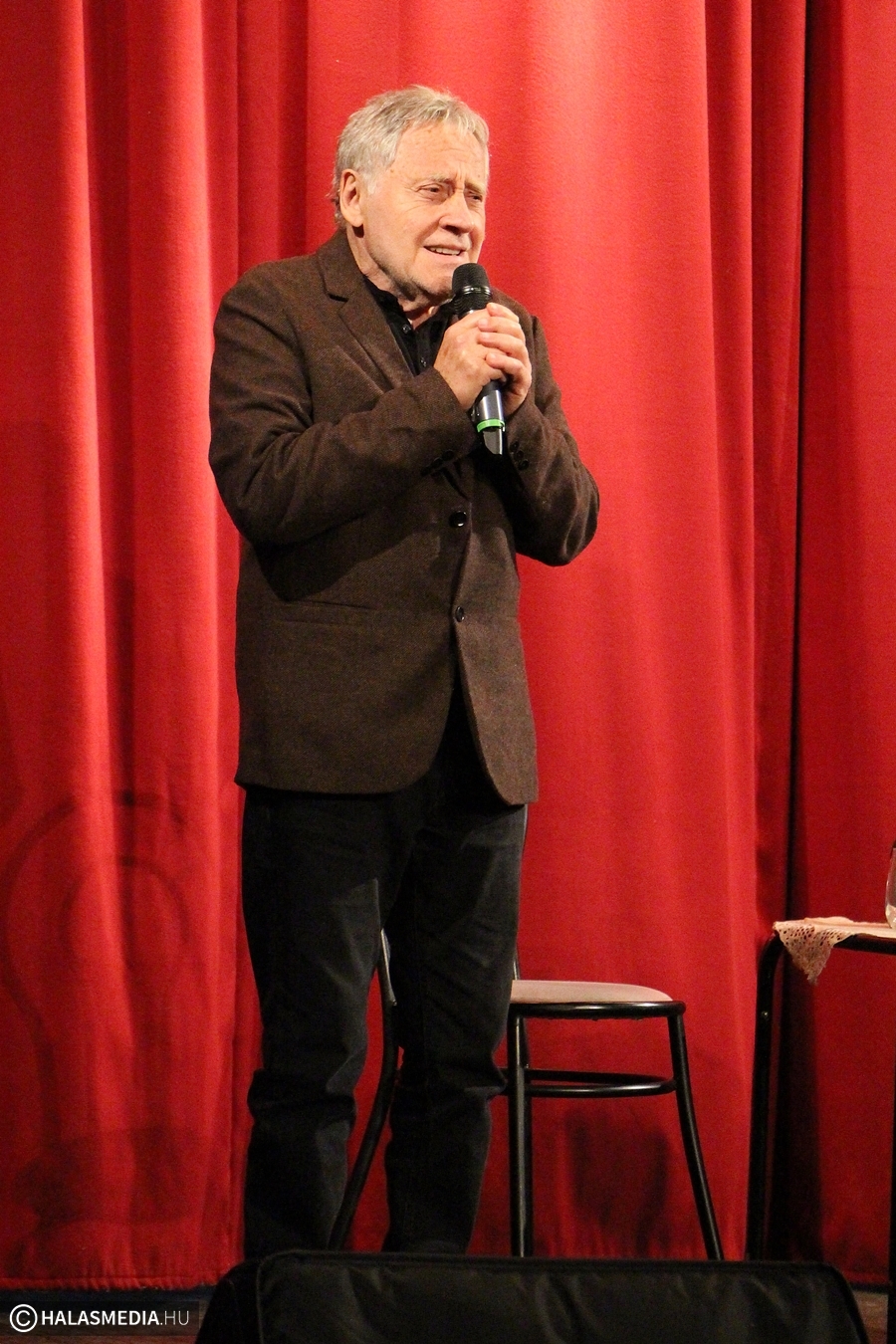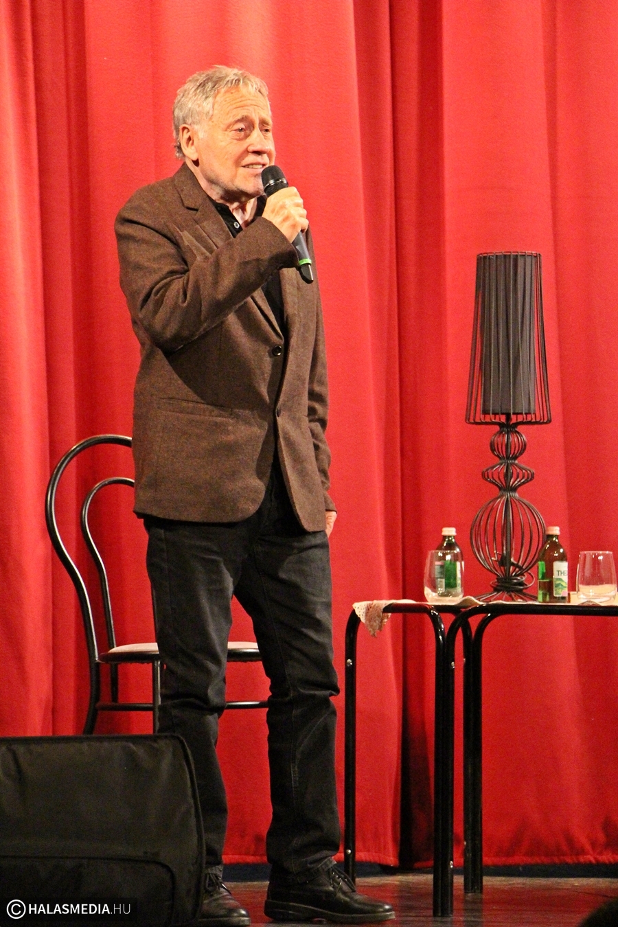 A megjelenteket Vadkerti Mónika, a Halasi Városmenedzser Kft. programszervezője üdvözölte, majd érkezett az est főszereplője, Koltai Róbert színművész. Mi mással is indíthatta volna a műsort, mint a Sose halunk meg című film ikonikus dalával, a Nagy utazással.