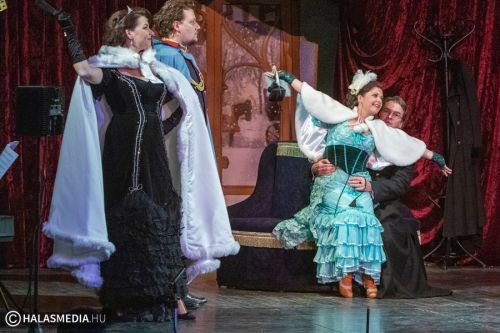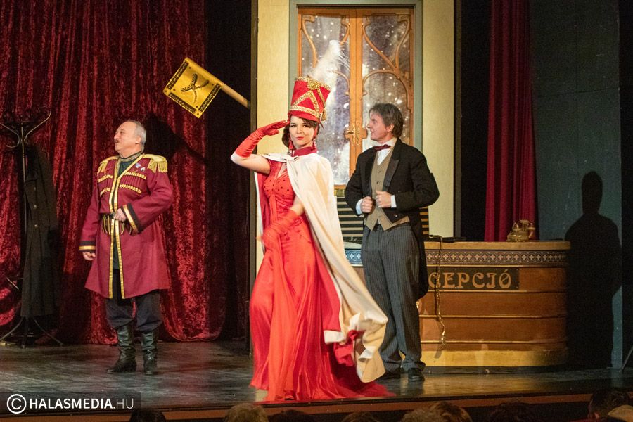 - Egy Jacobi Viktor-operettet hoztunk. Nagyon jó a dallama, nagyon jó a sztori, nagyon érdekes. Nagyon szeretik az emberek. Reméltük, hogy ez Kiskunhalason sem lesz másképpen – mondta Teremi Trixi, aki Charlotte szerepében lépett színpadra, és a darabot rendezőként is jegyzi. – A Nivot Produkció előadása, a színházat két és fél éve alapítottuk a férjemmel. Az első bemutatónk a Sybill volt. A zenés darabban én vagyok a címszereplő énekesnő zongorakísérője. Egy kicsit bohókás nő. Aranyos, tűzrőlpattant karakter. Féltékennyé tesz a férjét, aki egy pipogya alak – tette hozzá.