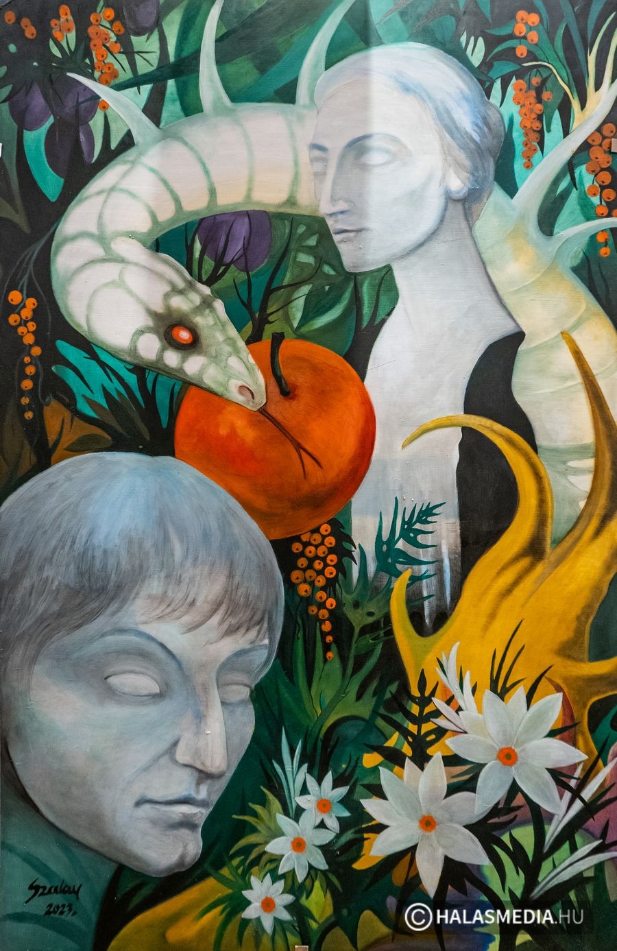 Sáli Levente örömmel tett eleget a kérésnek, mert Szalay László hasonló mélységek és magasságok közepette alkotott, mint ő az elmúlt negyven évben és úgy érezte, rokonlélekként nem mondhatott nemet. Később a közönséget – állva, karakteres gesztikulációk kíséretében – avatta be a művészi alkotás boszorkánykonyhájába. Szalay László művészi festményeihez a hozzávalók a fény, az árnyék, egy kis szürrealizmussal, humorral fűszerezve, ami beindítja az alkotó lelkét, amelynek hatására az visszafoghatatlanul ontja ki magából a csodát. Jelen eseteben a közönség a „Laci konyha” varázslatos menüjét kapta a terem falainak terítékén.