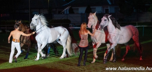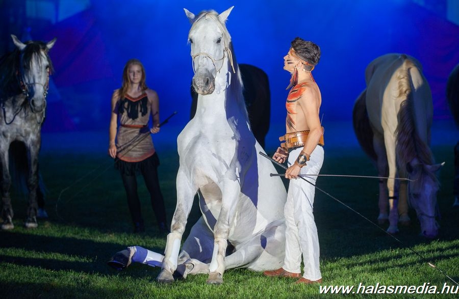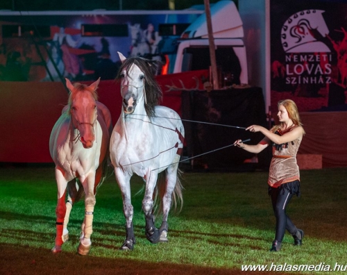 A Nemzet Lovas Színház színészei technikai személyzete már szombat délelőttől elkezdte a füves pálya díszleteinek elrendezését, a hang és fénytechnika telepítését. A darabot a helyszínen be is próbálták lovaikkal a Nemzet Lovas Színház színészei és statisztái. Este 7 órára zsúfolásig megteltek az aréna lelátói és kis idővel a meghirdetett kezdést követően elindult a látványos darab.