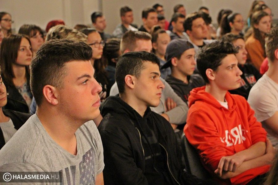 - Nem csak a tizenévesekről, hanem a felnőttek jelentős részéről is elmondhatjuk, hogy netfüggők. Darabunk arra világít rá, milyen szörnyű dolgokat okozhat például egy felelőtlenül, meggondolatlanul írt komment. A mostani, halasi előadás azért különleges, mert nem volt még olyan fellépésünk, ahol kizárólag középiskolások ültek volna a nézőtéren. Szeretnénk, ha élményekkel gazdagodva távoznának, ennek érdekében pedig humoros formában közelítjük meg a komoly témákat – árulta el Judit.