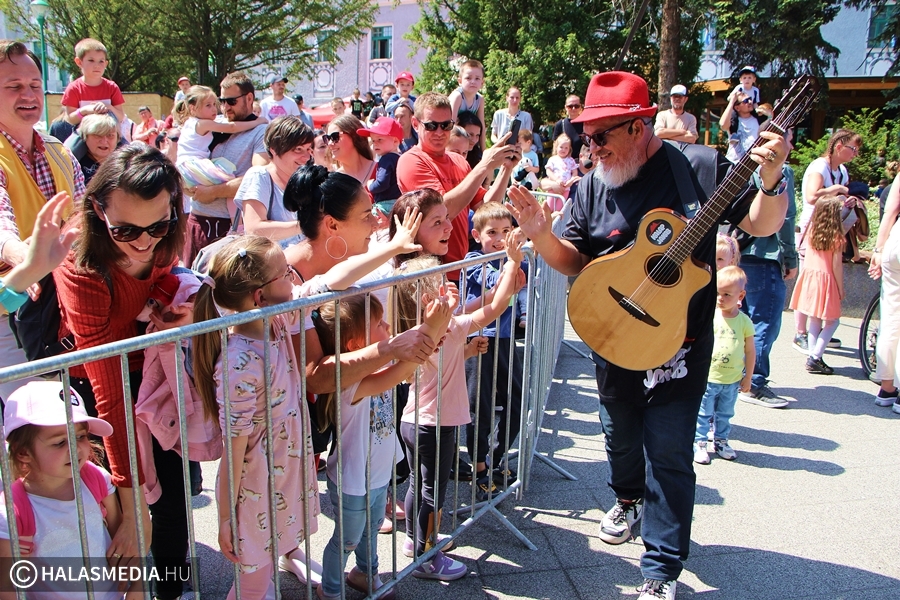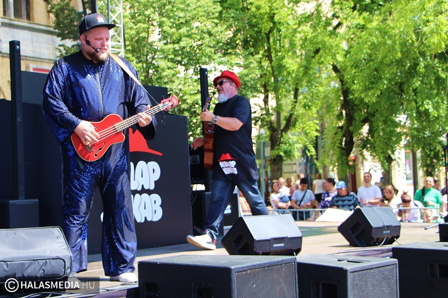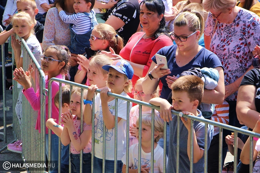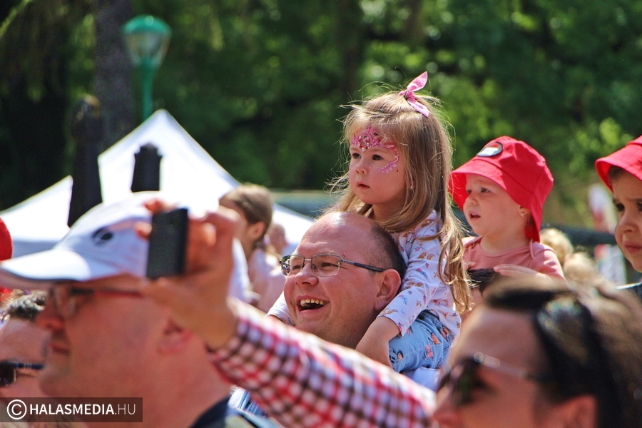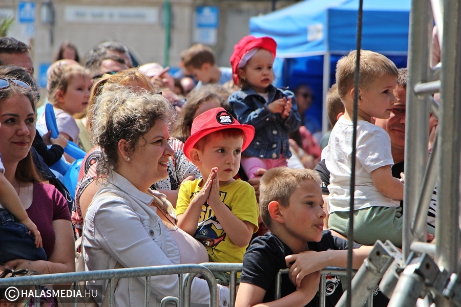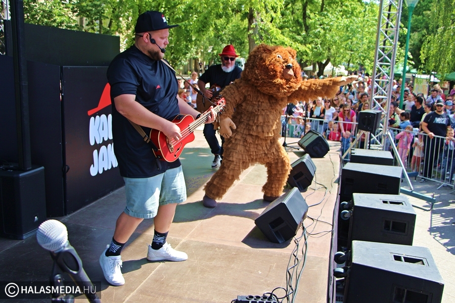 Öröm volt végignézni szombaton délelőtt a Bethlen Gábor téren. Rengeteg halasi és környékbeli család döntött úgy, hogy kilátogatnak a Nyárindító Főtérparty második napjának első koncertjére. Az interneten is hatalmas rajongótáborral rendelkező Kalap Jakab családtagjaival állt közönség elé.