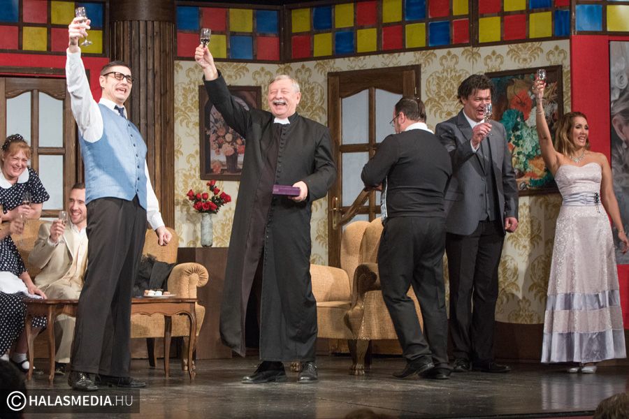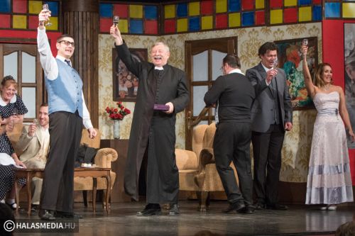- Én egy italt kedvelő papot alakítok – fedte fel Várkonyi András. - Nagyon kedves színfoltja ennek a feydeaui világnak. Élni igen szerető, életét csak kevéssé a vallásnak szentelő figura – tudtuk meg.