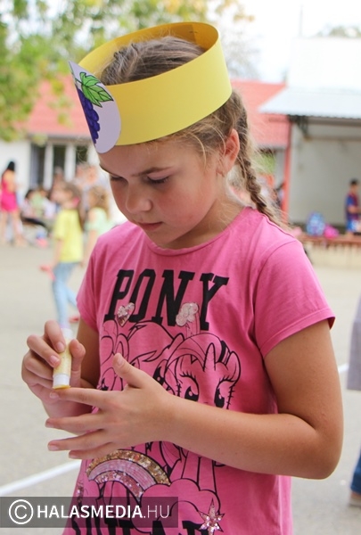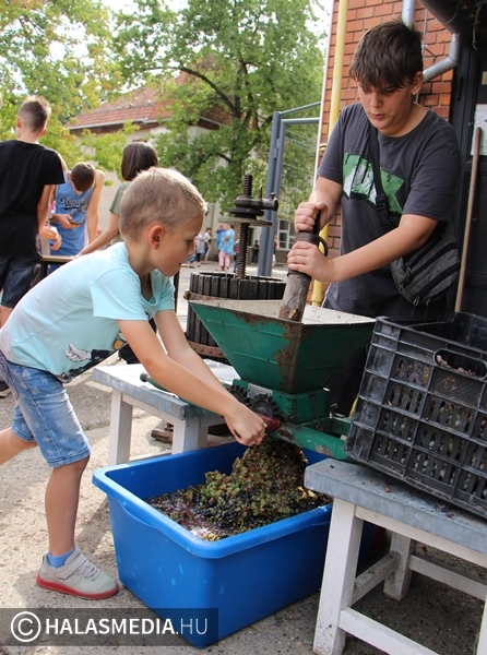 Ezúttal András kisbíró tudatta a megjelentekkel, hogy elkezdődhet a mulatság. A színpadon kis műsort mutattak be a diákok, szüreti énekekkel, versekkel, népszokások bemutatásával, Kádár Szilárd közreműködésével. Ezt követően számtalan helyszín várta az érdeklőket. Lehetett szőlőt darálni, préselni, aztán pedig mustot kóstolni. Az alsó, valamint a felső tagozatosokat kézműves foglalkozás várta. Az iskolában vendégeskedő ovisok pedig rajzolhattak is. Volt hordógurítás, gólyalábazás, arcfestés, terményfelismerés is. Scrab Metal Art néven kiállítást rakott össze Bartkó Pál, valamint Krivosija Mihály. Megmutatták, hogy fémhulladékból, alkatrészekből milyen mutatós szobrokat lehet készíteni.