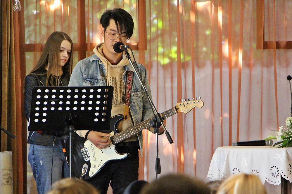 - A hatvani református gyülekezetben már elég régóta van dicsőítő zenekar, azonban mi, fiatalok csak nagyjából 3-4 éve zenélünk ebben a formációban együtt. Apukám a hatvani gyülekezetben segédlelkész, így én köztük nőttem fel. Mindig is vonzott ez a zenekar, most pedig, hogy az én vezetésemmel működhet, mindennél többet jelent nekem. Az Isten dicsőítése zenén keresztül számomra a legfontosabb dolog, imádom. Eredetileg hegedűn játszottam, aztán megismerkedtem a gitározással és a rockzenével, ez pedig szerintem nagyon jót tett a zenekarnak is. Folyamatosan bővítjük a repertoárunkat, újabb és újabb egyházi dalok kerülnek be a műsorba – árulta el Kim Sungjin, zenekarvezető.