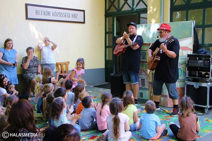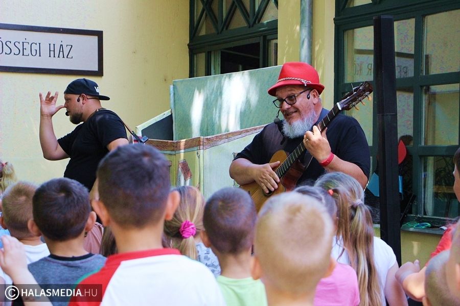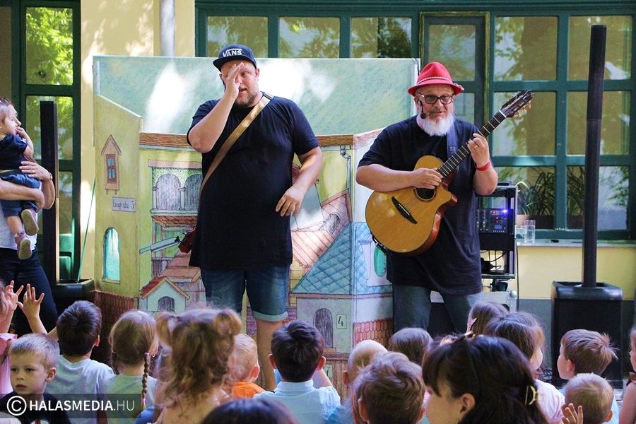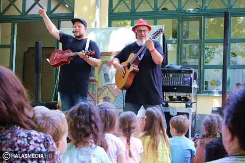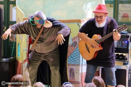 A népszerű Kalap Jakab formáció vendégeskedett ma délelőtt Kiskunhalason. A zenészduó produkciójára sok gyermek és felnőtt volt kíváncsi. A Ciróka Baba-Mama Klub tagjai mellett több óvodából is érkeztek érdeklődők a református templom melletti szabadtéri helyszínre. A kicsik és nagyobbak egy igazi interaktív show műsor részesei lehettek.