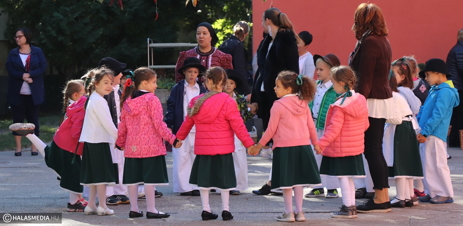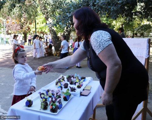Hetek óta lelkesen készültek a Bóbita Óvodában a hagyományos szüreti Aprók Vásárára. Pénteken délelőtt az intézmény udvarán gyümölcsért cserébe saját készítésű ajándéktárgyakat lehetett kapni, közben pedig táncra perdültek a kislányok, kisfiúk az óvónők és a jelenlévő szülők is.