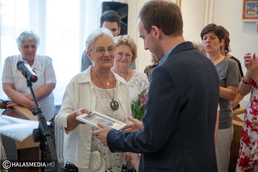 A Kazincbarcikai Gobelin Öltögetők Köre ajándékot is hozott Kiskunhalasnak. A városképet Farkas Dániel vette át Kissné Király Piroskától. Az alpolgármester azt mondta, a városháza folyosóján lesz kifüggesztve az alkotás.