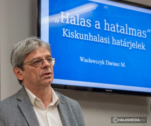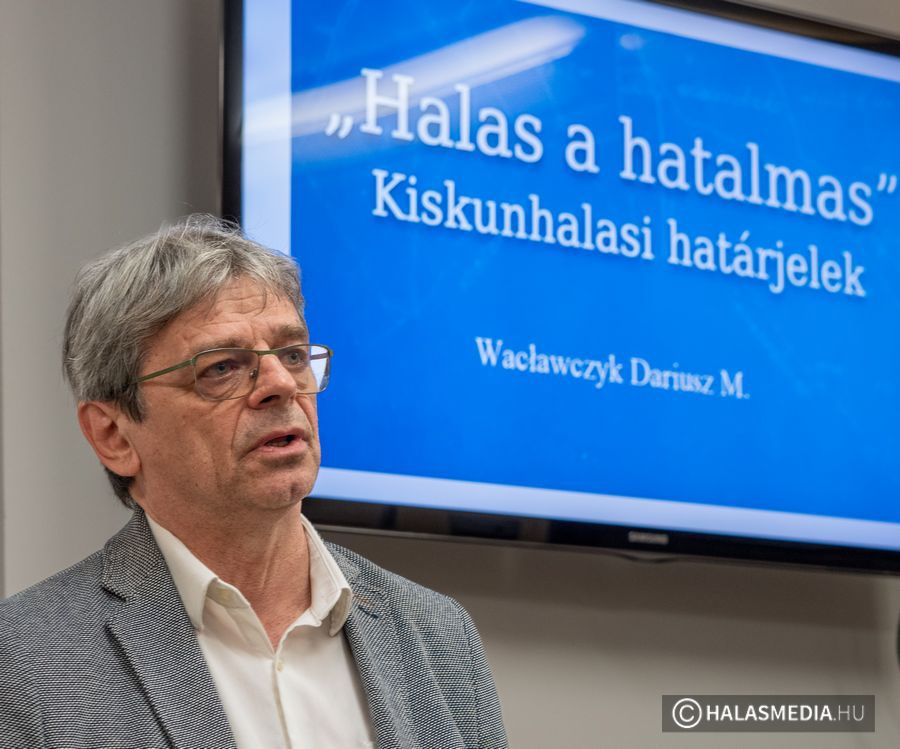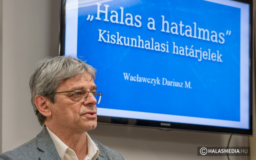 Wacławczyk Dariusz ezúttal, mint határkutató állt a közönség elé. A lengyel származású, Kiskunhalason elsősorban a huszár katonai hagyományőrzés terén ismertté vált Dariusz, a bemutatandó „Halas a Hatalmas” című könyv kapcsán is hangsúlyozta az általa parancsnokolt Kiskunhalasi Lovasbandérium jelentőségét. Az egység ugyanis több évtizede járja a határt és felkutatta Kiskunhalas még fellelhető, kövekkel jelölt történelmi határait. Ez volt az egyik indíttatója, hogy mélyebben utána nézzen a 17. és 18. században létrejött városhatárok történetének.