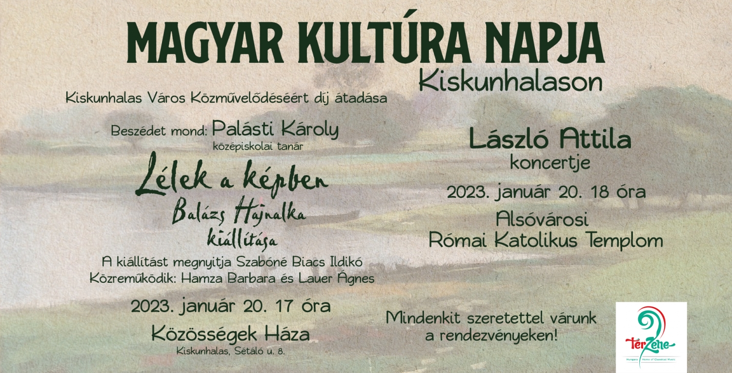 A Közösségek Háza nagyterme ad otthont január 20-án, vagyis holnap délután 5 órakor a Magyar Kultúra Napja alkalmából tartandó ünnepségnek. Az esemény keretében nyílik meg Balázs Hajnalka Lélek a képben című kiállítása és átadják a Kiskunhalas Város Közművelődéséért Díjat is.