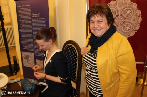 A megnyitó ideje alatt Farkas Éva csipkevarró tartott bemutatót a közönségnek.