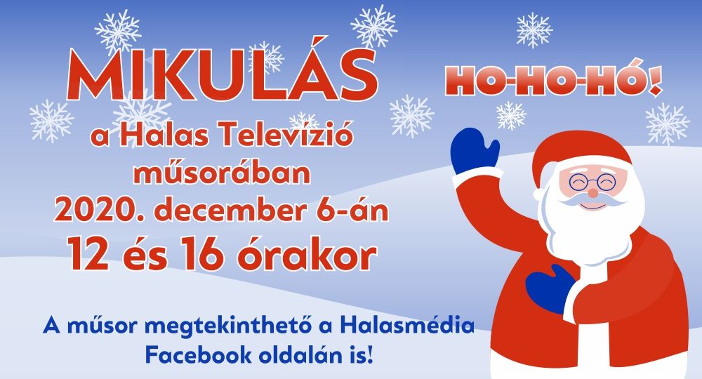 A Mikulásnapi műsort december 6-án 12 és 16 órakor láthatják majd az érdeklődők a Halas TV műsorán, valamint a Halasmédia facebook oldalán.