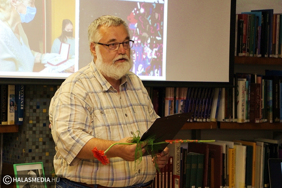 - Művelődéselméletben, pedagógiában összetartozó fogalmak az olvasásmegértés, az alkotás és a befogadás. A Szilády-gimnázium köti össze a két embert, akik kapcsán ma itt összegyűltünk. A költő, Rigó Béla és az irodalomtanár, Dr. Kiss Lászlóné. Rigó Béla a múlt hónapban lett volna 80 éves, az ő verseiből hangzik ma el több is. Patri szintén közel a 80. évéhez, szerencsére jó egészségnek örvendve van itt közöttünk. Nemzedékek magyar- és latintanára volt, többek között nekünk is. Úgy döntöttünk, ha már a pandémia miatt nem tudta nyilvánosan átvenni 2020-ban a díját, most ezzel a kis esttel ünnepeljük őt meg – nyilatkozta Mester Sándor a program főszervezője.