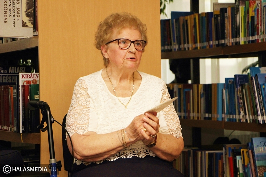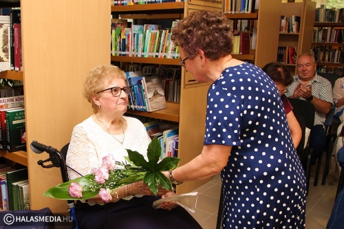 A 80 éve született Rigó Béla költő verseivel köszöntötték Dr. Kiss Lászlóné Patri nénit, aki két évvel ezelőtt kapott Cum Gratia-díjat, ám a pandémia miatt eddig nem tudták méltóképpen megünnepelni a jeles eseményt. A csütörtök esti kulturális programon a nyugdíjas pedagógus több volt diákja is elszavalt egy-egy szép verset.