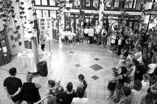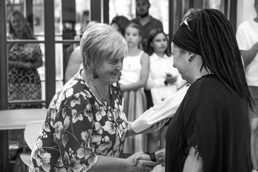 „3 ország, 3 művészeti ág, 240 alkotó, sok-sok felkészítő pedagógus, szülők, zsűritagok, a Zöld-híd Egyesületünk tagjai, Kiskunhalas Város és a szponzorok támogatása tette lehetővé, hogy együtt csodálkozzunk rá a boldog alkotó órákra és az együttműködés eredményére. Minden korosztály képviseltette magát, az alkotók 5 éves kortól – 60 éves korig küldték el pályamunkáikat. A kiállításon 55 díjazott alkotás látható, melyek mindegyike megszólít bennünket és cselekvésre ösztönöz: vigyázzunk egymásra, környezetünk természeti és épített értékeire… és mi válaszolunk: Vigyázok Rád! – ígérte az elnökasszony.