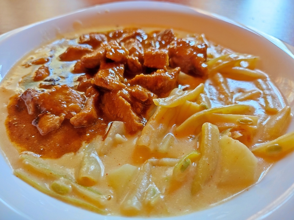 Tejfölös zöldbabfőzelék pulykapaprikással