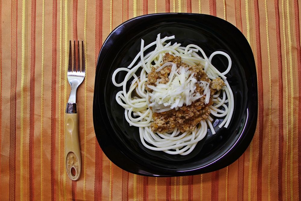 Hozzávalók: 1 fej vöröshagyma, 1 szál zellerszár, 1 szál sárgarépa, 2 - 3 ek olívaolaj, 500 g darált sertéshús, frissen reszelt szerecsendió, 3 gerezd fokhagyma, só, bors, 300 ml vörösbor, 500 ml passata (passzírozott paradicsom), 100 ml tej, 300 ml víz, spagetti vagy makaróni tészta, 80 g reszelt parmezán (vagy bármilyen sajt)