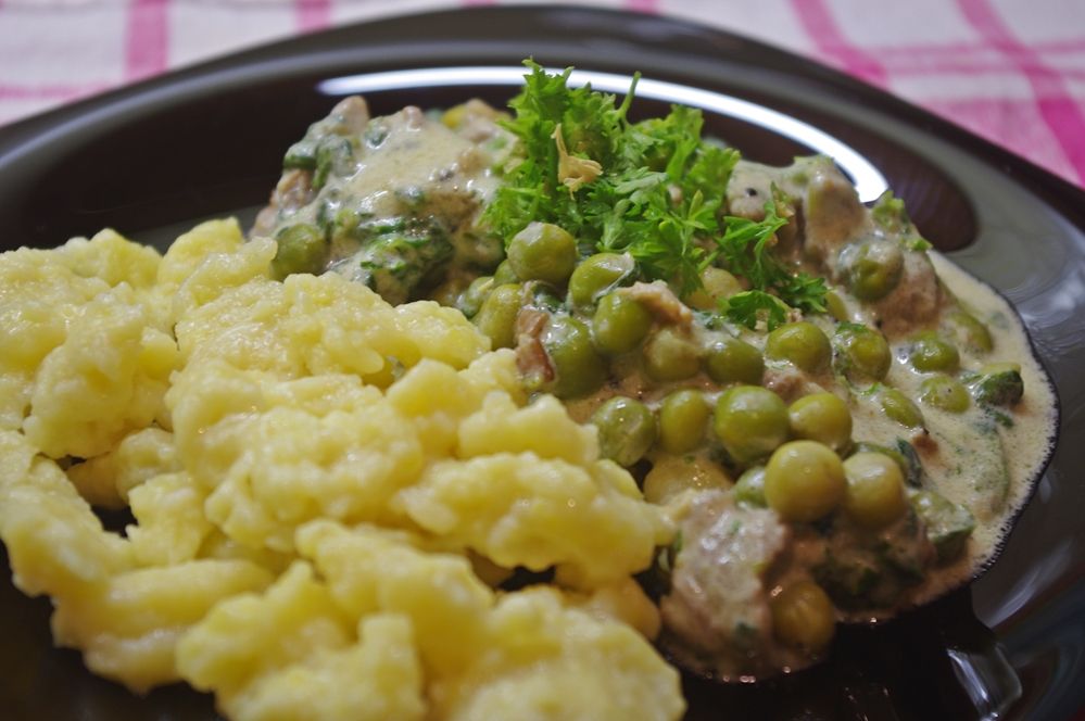 Elkészítés: A pulykahúst kisebb kockákra vágom, a hagymát is felkockázom. A hagymát olajon megpirítom, majd hozzáadom fokhagymát és a húst. Sózom, borsozom, és kis vizet is lehet alá tenni, ha túl száraznak találjuk. Mehet rá a zöldborsó, majd pár perc után a tejszínt is ráöntjük. Amikor a hús és a zöldborsó is megpuhult, hozzáadom a spenótot, aminek tényleg csak pár perc kell. Ezúttal galuskát készítettem hozzá és melegen tálaltam.