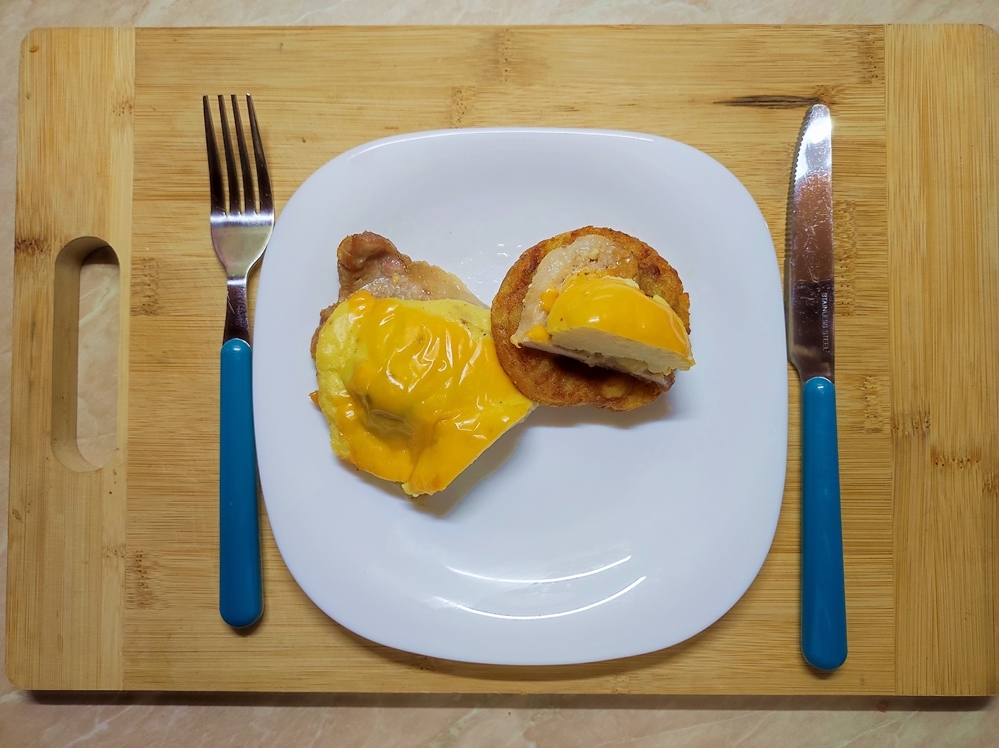 Elkészítése: A sertéskarajt kiklopfoljuk, majd teflon serpenyőben, pici olajon, natúr módon elősütjük. A karfiolt sós vízben megfőzzük, leszűrjük, kihűtjük. A hússzeleteket kivajazott tepsibe rakjuk, a kihűlt karfiolt ráhalmozzuk, és leöntjük a besamelmártással, amihez a serpenyőben vajat olvasztunk, majd mehet bele a liszt. Felöntjük tejjel, sóval, fehérborssal, szerecsendióval ízesítjük, és mártás sűrűségűre főzzük. A karfiollal, besamellel fedett húst megszórjuk a reszelt sajttal, és előmelegített sütőben pirosra sütjük. Köretként ezúttal rösztit választottam.