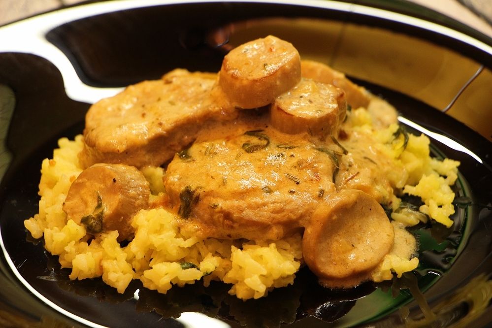 Hozzávalók: 1 vöröshagyma, 2 ek zsír, 60 dkg szűzpecsenye, só és bors ízlés szerint, rozmaring, 30 dkg (ördögszekér) gomba, 2 dl tejszín, fél citrom reszelt héja és leve, 1 csokor petrezselyem