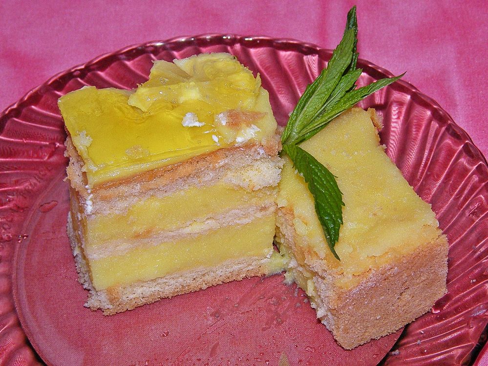 Elkészítés: A pudingot a cukorral és a tejjel a szokásos módon sűrűre főzöm, és időnként megkavargatva kihűtöm. A habosra kevert margarint hozzáadva krémmé keverem, a citromlével és a reszelt héjjal ízesítem. Ezzel a krémmel töltöm meg a piskótalapokat. Az elkészítés után pár órára hűtőbe rakom.
