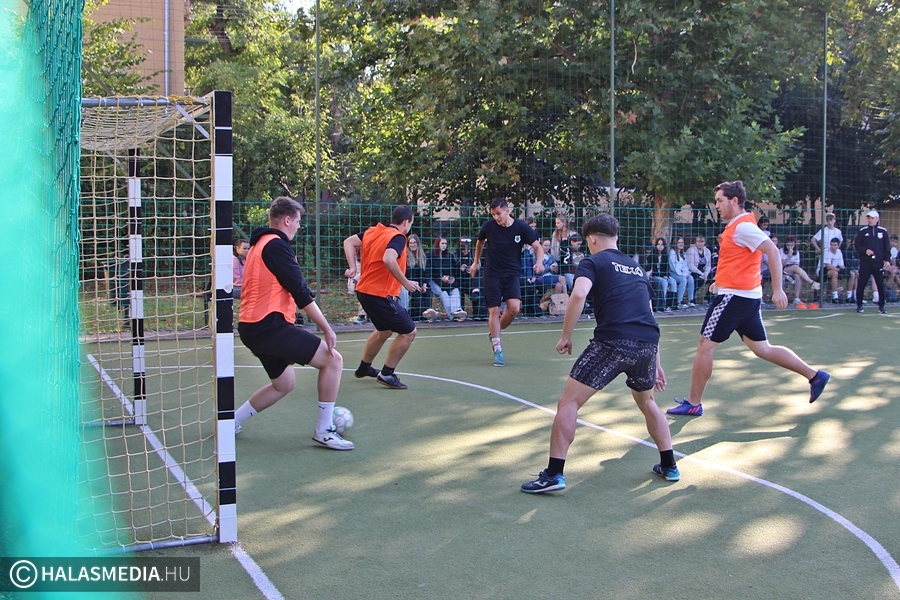 - Most ünnepeljük a Magyar Diáksport Napját. Iskolánk ötödik éve csatlakozik ehhez a kezdeményezéshez. Kollégáimmal minden évben igyekszünk változatos programlehetőségeket összeállítani a diákoknak. Röplabdabajnoksággal készültünk, a műfüves pályán aranygólos focikupa zajlik. A tollaslabdázást is ki lehet próbálni, akik pedig kicsit nyugodtabb programokra várnak, őket egy sportkvíz várja az iskolakönyvtárban. Büszkék vagyunk arra, hogy most is sok fiatalt sikerült megmozgatnunk. Az eleje persze mindig döcögősen indul, de aztán kedvet kapnak egymástól, így a végére belendül a sportolási vágy – árulta el Szabó Dalma szervező pedagógus.