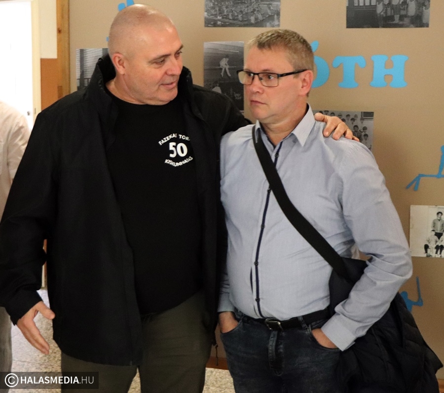 Engedtessék meg, hogy jelen sorok írója érintettsége okán kissé személyesebben és elfogultabban tudósítson egy eseményről. Kovács Attila (Oszi), Hegyes Csaba (Pőcő), Huszár Amdrus (Pipi), Csillag István (Zirgil), Tóth István (Dzsúdzsi). Impozáns névsor és ez még egyáltalán nem teljes. A halasi tornászberkekben, sőt országosan is jól csengő nevek ezek. Az idén 50 esztendős Fazekas Mihály Általános Iskola diákjai voltak ők, akik ebben a nehéz, de szép sportágban értek el egészen kiváló eredményeket. Több generáció tornászai találkoztak szombaton délután egykori iskolájukban. - Először azt terveztük, hogy egy baráti beszélgetésre néhányan összegyűlünk, aztán közel ötvenen lettünk. Ezekre a fiúkra büszkék vagyunk és jó volt őket újra látni, hallani - fogalmazott a találkozó szervezője Kárász Péter igazgató. A vendégek már a megérkezés után sztorizásba kezdtek, ebben a kiváló edző, testnevelő, a mostanság már a gasztronómiában jeleskedő Lekrinszki Zoltán vitte a prímet.