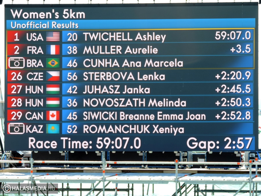 Jó volt magyarnak, jó volt halasinak lenni. Sokan megszólítottak minket, kérdeztek Jankáról, a halasi úszósportról. Büszkén válaszoltunk és bizony bezsebeltük Novotny Attiláék helyett is az elismerő szavakat. Izgultunk, szorítottunk, a halasi lány végül a 27. helyen csapott be a célba, ami nagyon jó eredmény, pláne ha meghalljuk azt az interjút, amelyet rögtön a célbaérés után adott az m4 csatornának. Novotny Attila elköszönt, Jankához ment. Ott akart lenni tanítványa mellett. Holnap nagy feladat vár rá, a 4x1250 méteres mixváltóval ismét komoly próbatétel következik. Közben Adélt az édesanyja megölelte, elbúcsúztak egymástól, edzésre kellett mennie. Neki éppen ma van a 19. születésnapja. Szép ünnep volt, köszönjük Janka, Isten éltessen Adél!