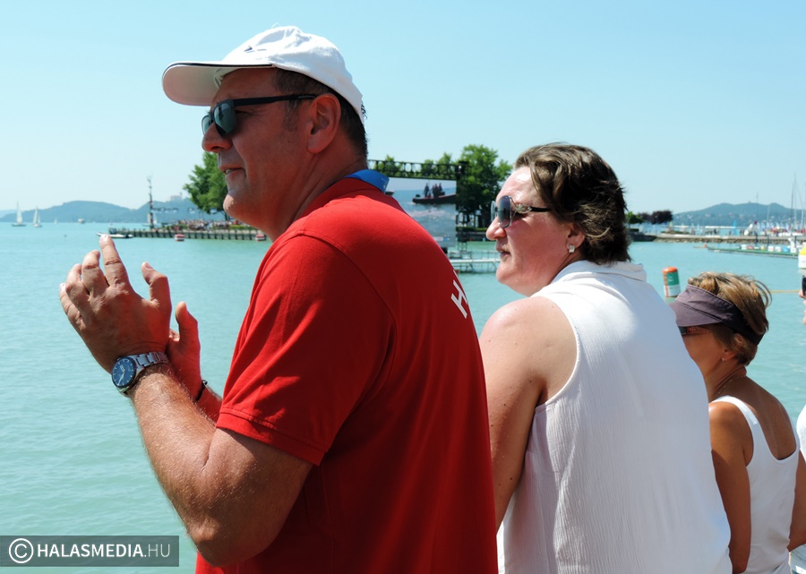 Az elmaradhatatlan fütyülés sem hiányzott, amikor kimondta a helyi műsorközlő Janka nevét, akkor a publikum hangos ovációban tört ki. Látszott, kemény a küzdelem, fejek tüntek el és bukkantak fel, amikor pedig a közönség előtt úsztak el, hatalmas volt az üdvrivalgás. A magyar szervezők jól kitalálták azt, hogy a lelátót a Balatonra telepítették, így a nézők nagyon közel voltak az eseményekhez. Közben Novotny Attila arról beszélt, hogy a halasi fiatal számára egy próbatétel, hogy szokja ezt a közeget is. Húsz világklasszis társaságában versenyzett Janka, az edző még hozzátette, ez jó felkészülés lesz a holnapi mixváltóra.