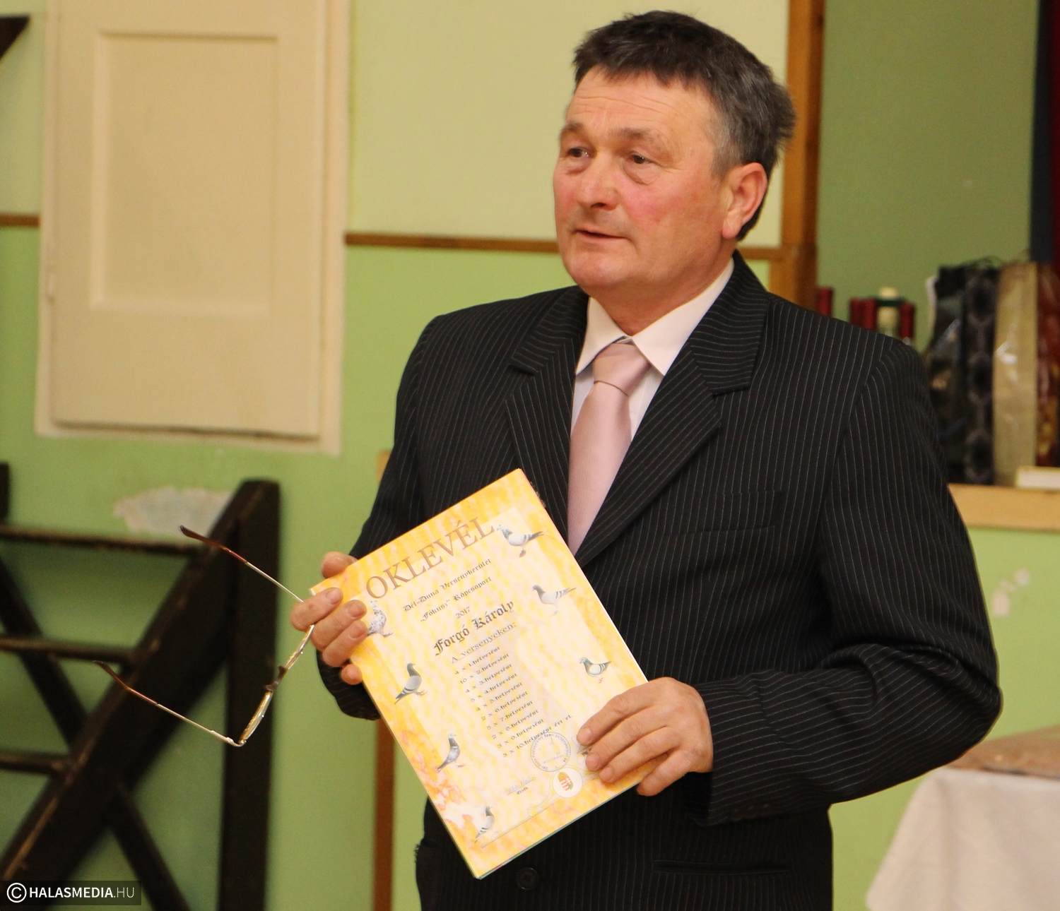 A díjakat és az elismeréseket Szalai Károly elnök adta át. Az is kiderült, hogy a postagalambászat nem korfüggő,. ugyanis több tizenéves versenyző kiváló eredményeket ért el 2017-ben. A legeredményesebb tavaly Forgó Károly volt (címképünkön), aki elmondta, 25 évvel ezelőtt települt át Vajdságról Kiskunhalasra és tagja lett az itteni egyesületnek. Az összejövetelen elhangzott, hogy már nagyon várják a jó időt és a versenyszezon kezdetét.