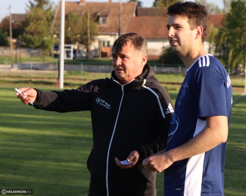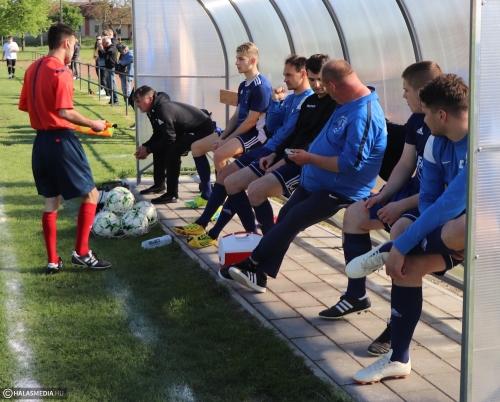 Kiegyenlített első 45 percet láthattak a drukkerek. A halasiak jól küzdöttek, egyenrangú ellenfelei voltak a vendégeknek. Kissé váratlanul szerzett vezetés a Bácsalmás, egy balszerencsés mozdulatot követően, a hazai kapusról, Lengyel Péterről került a gólvonalon túlra a labda. A KFC nem adta fel és egy szögletrúgást követően Ács Gergely fejelt a vizitálók kapujába. Ha Miskei László higgadtabb, akkor akár halasi vezetés lehetett volna az első félidő után.