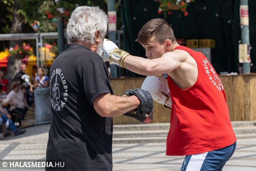 A Nyárindító Főtérparty harmadik napán a sporté volt a főszerep. A halasi főtéren több egyesület élt a lehetőséggel és betekintést engedett a saját sportágába, amelyeket ki is lehetett próbálni. Zsebő Marcell országos bajnok gokartos elhozta a díszes serlegeit és három versenyjárművét is. A sünkereső kalandtúra mellett az erősember verseny és a rúdfitnesz-bemutatónak is nagy sikere volt.
