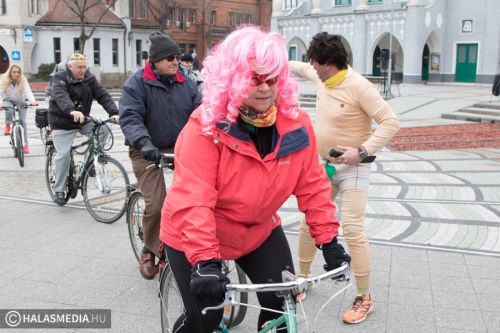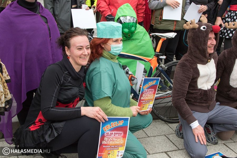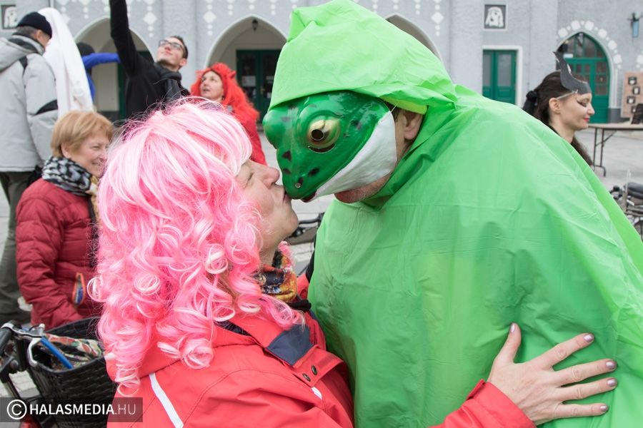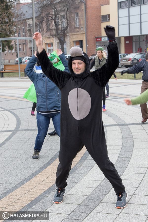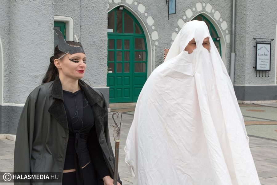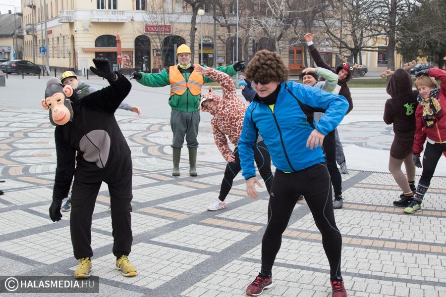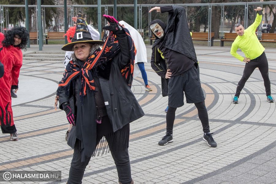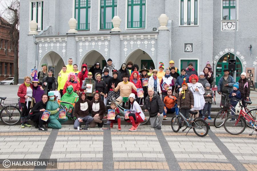 Vidám, színes, tarkabarka ruhás csapat gyűlt össze ma délben Kiskunhalas főterén.