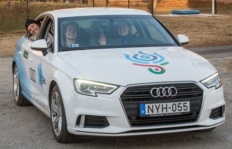 Szeptemberig használhatja Juhász Adél azt az Audit, amelyet a Magyar Úszó Szövetséggel kapcsolatban álló Sport Event Sporthősökért Kft. biztosít számára. Aki jobban megfigyeli majd az autót, az láthatja, hogy a reklámok között ott van a budapesti úszó világbajnokság, amelynek egyik népszerűsítő eszköze is a járgány.