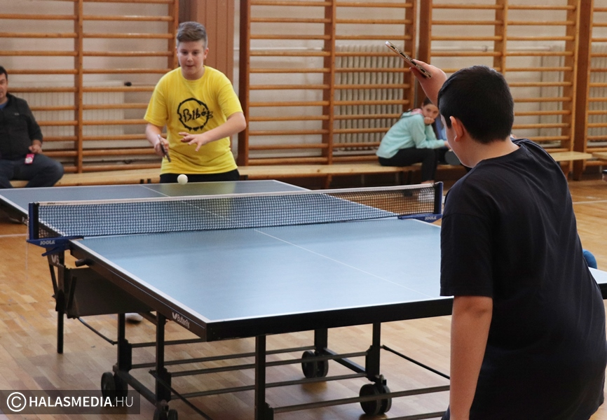 Az asztalitenisz játszotta a főszerepet szombaton a Szent József Katolikus Iskola tornatermében. A kaucsuklabda pattogását örömkiáltások szakították meg egy-egy szép labdamenet végén. Az Ifj. Várhegyi József Emlékversenyre idén nemcsak halasi intézmények küldték el a legjobb asztaliteniszezőiket. A Szent József-iskola mellett Kiskunhalast a Bibó István Gimnázium képviselte, először vettek részt a tázlári és a kiskunmajsai intézmények versenyzői. A több mint harminc nevező, több korosztályban mérte össze felkészültségét.